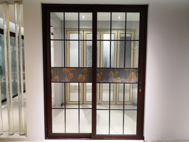 ZHX35推拉门-苹果木+格条夹飘带和灰玻